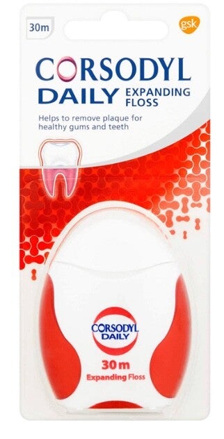 Corsodyl Daily Expanding Floss contains compressed fibres to reach the space in between the teeth.